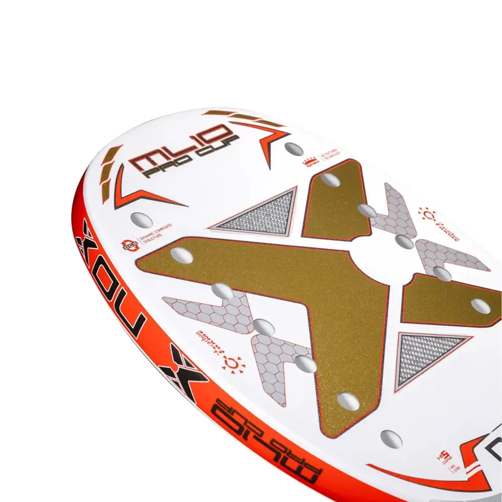 راکت تنیس ساحلی NOX مدل PALA BEACH ML10 PRO CUP یک گزینه عالی برای بازیکنان سطح پیشرفته است. این راکت دارای بالانس متوسط (Medio) است که تعادلی عالی میان کنترل و قدرت ایجاد میکند. هسته آن از Soft EVA ساخته شده که در هنگام ضربهزدن احساس نرمی و بازگشتپذیری مناسب فراهم میآورد، و فیس راکت از فیبر شیشهای (فایبر گلس) بهره میبرد تا ترکیبی از سبکوزنی و دوام بالا را ارائه دهد.