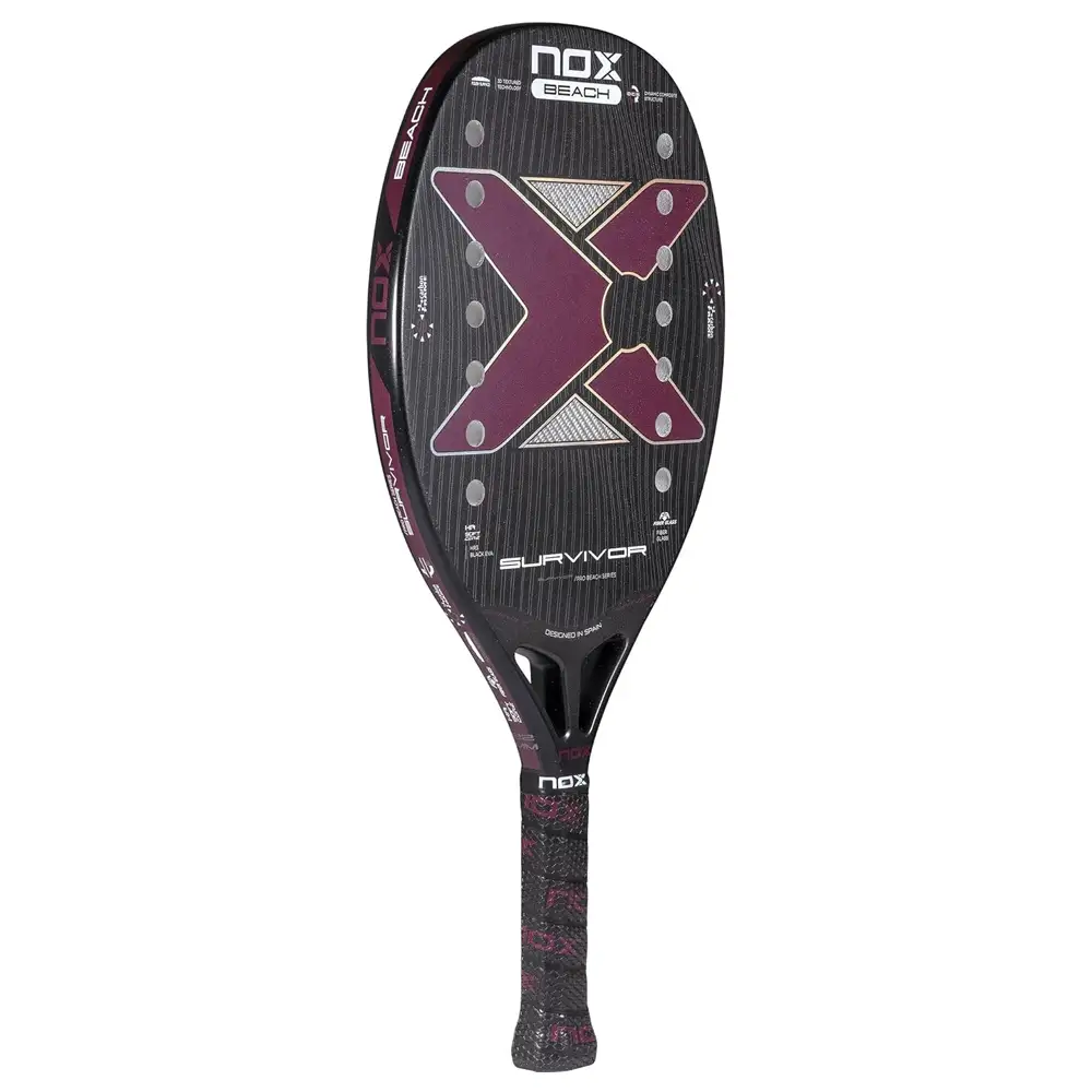 تکنولوژی DCS Dynamic Composite Structure عملکرد راکت را حتی در ضربات خارج از مرکز پایدار نگه می دارد و سطح زبر با ذرات سیلیس اسپین بیشتر و کنترل دقیق توپ را ممکن می کند. با وزن بین 335 تا 355 گرم، SURVIVOR سبک و در عین حال قدرتمند است و تعادل ایده آل برای انواع سبک های بازی دارد. این راکت تنیس ساحلی  از برند NOX مناسب همه سطوح مهارتی است و تجربه ای حرفه ای، راحت و هیجان انگیز از تنیس ساحلی را به بازیکنان ارائه می دهد.