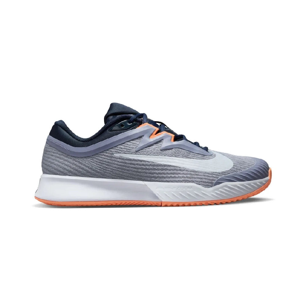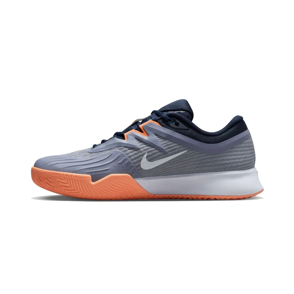 کفش تنیس نایک سری VAPOR PRO 3 تکنولوژی AIR ZOOM رنگ طوسی-نارنجی، با زیره herringbone و فناوری Claybreaker، چسبندگی و کنترل عالی در زمینهای خاکی ارائه میدهد. فوم نرم میانی و تکنولوژی Air Zoom به کار رفته در جلوی پا، انعطاف و سرعت را بهبود بخشیده و راحتی و ثبات را برای بازیهای حرفهای تضمین میکند. طراحی شیک طوسی-نارنجی، استایلی مدرن به بازی شما میافزاید.